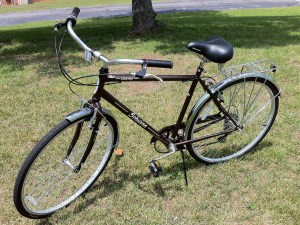 My wife and I exchanged, sorta, some gifts for our anniversary. She received, from me, a pearl ring, set with diamonds in silver. I received, from me (with her permission), a new Schwinn bicycle with chrome fenders, seven speeds, a rear rack, a speedometer/odometer, and a mirror. We were both pleased.