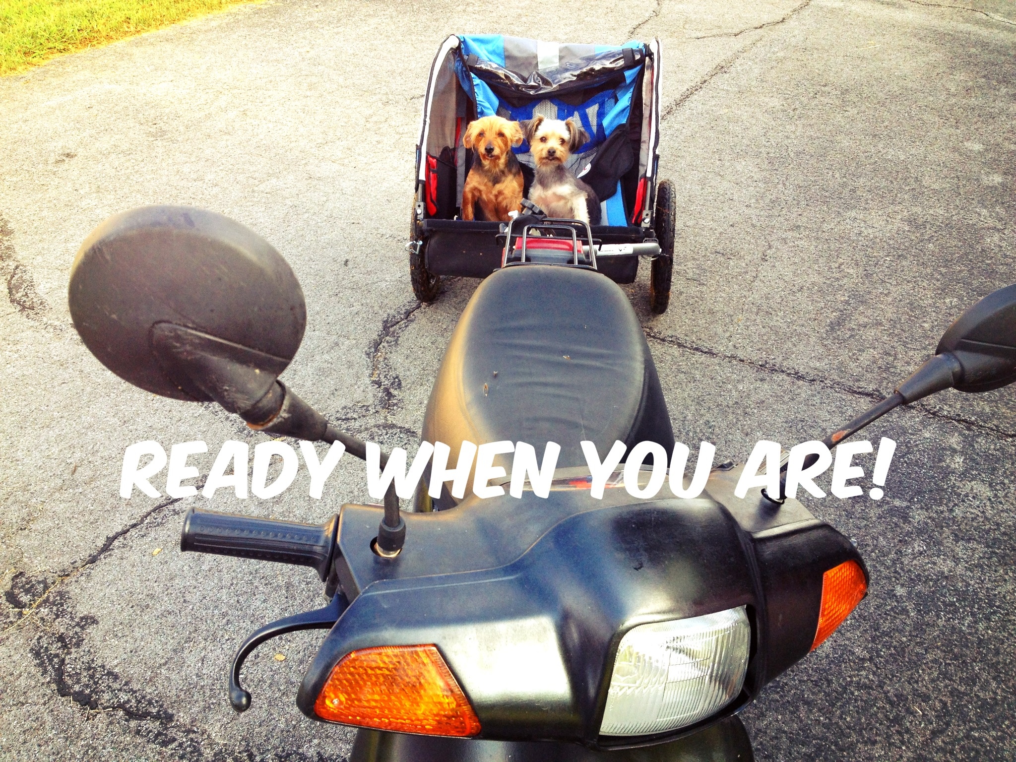 I’ve pulled the carrier around with a bicycle so Nugget and Baby Girl could ride along. When they found out I got a scooter they demanded we go for a ride.