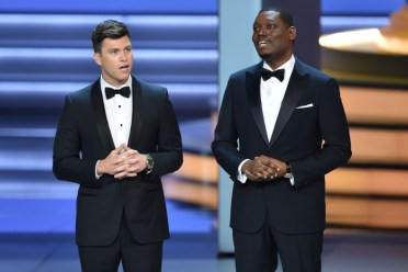 Then just this morning, all over the media news outlets, there came the clip from the Emmy Awards’ opening monologue from Colin Jost and Michael Che. Oh, it was hilarious! Not.