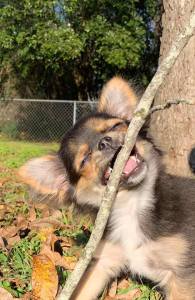 But George is the kind of dog that likes simple things. He likes his fancy squeaky toys, but he is just as happy with an empty toilet paper roll, a dust mask he might have snatched, or a simple stick in the back yard.