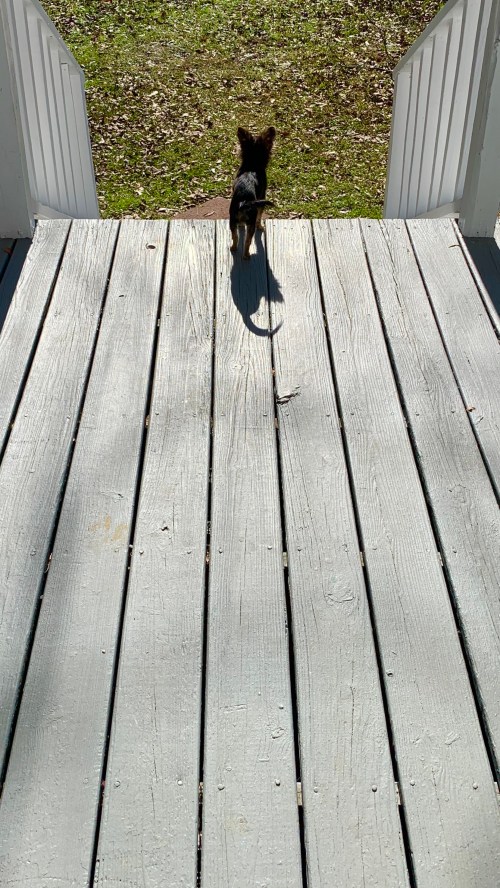 It is amazing how tiny dogs think they are so big. Of course, being king over the back yard might not be on George’s mind, but he knows his territory, from back porch to back fence.Â