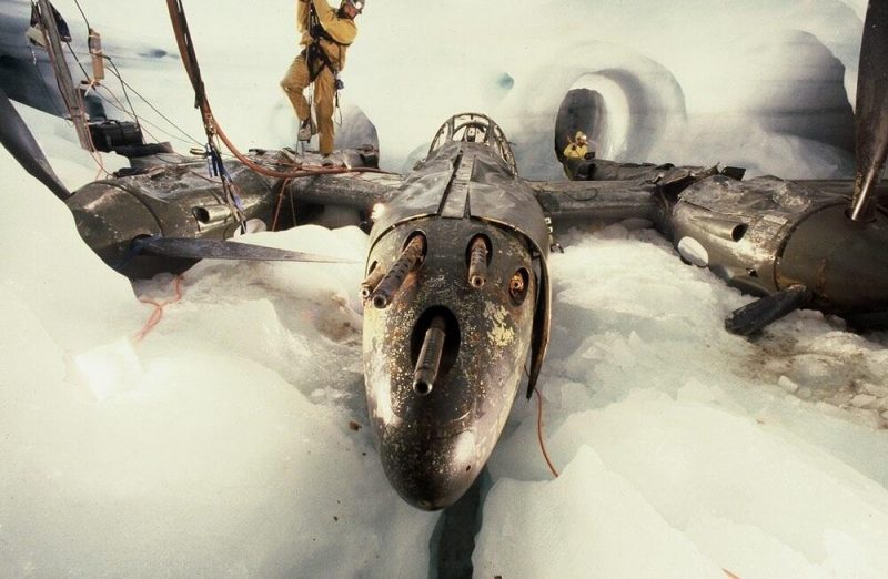 This particular fighter airplane was recovered and restored to flight worthiness with the new name “Glacier Girl.”