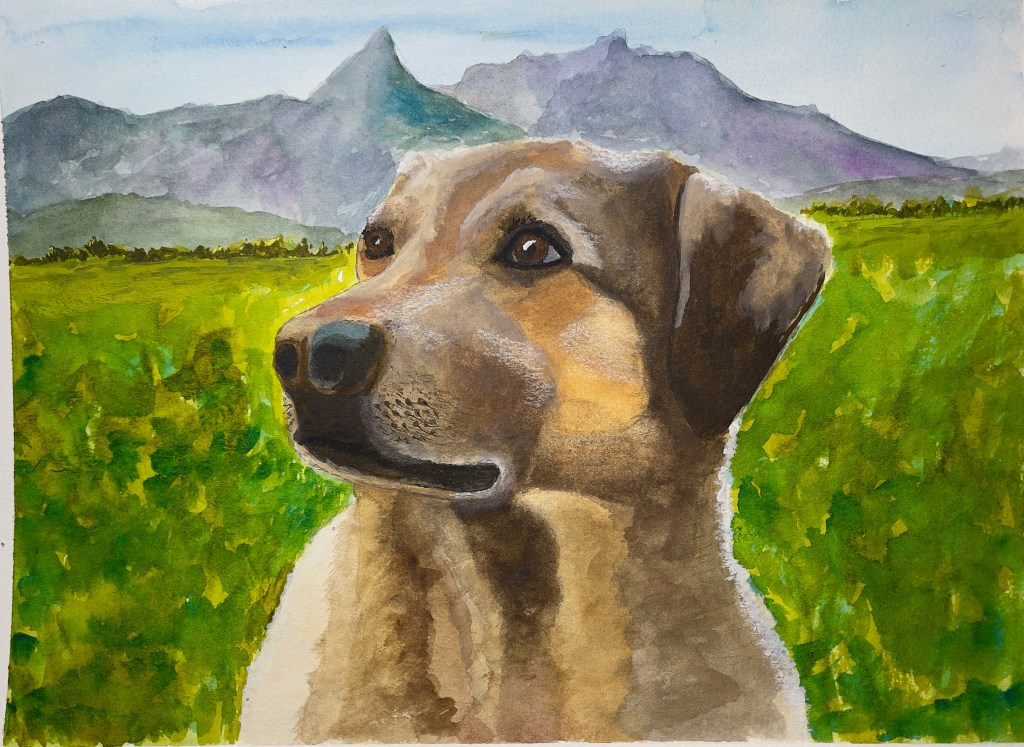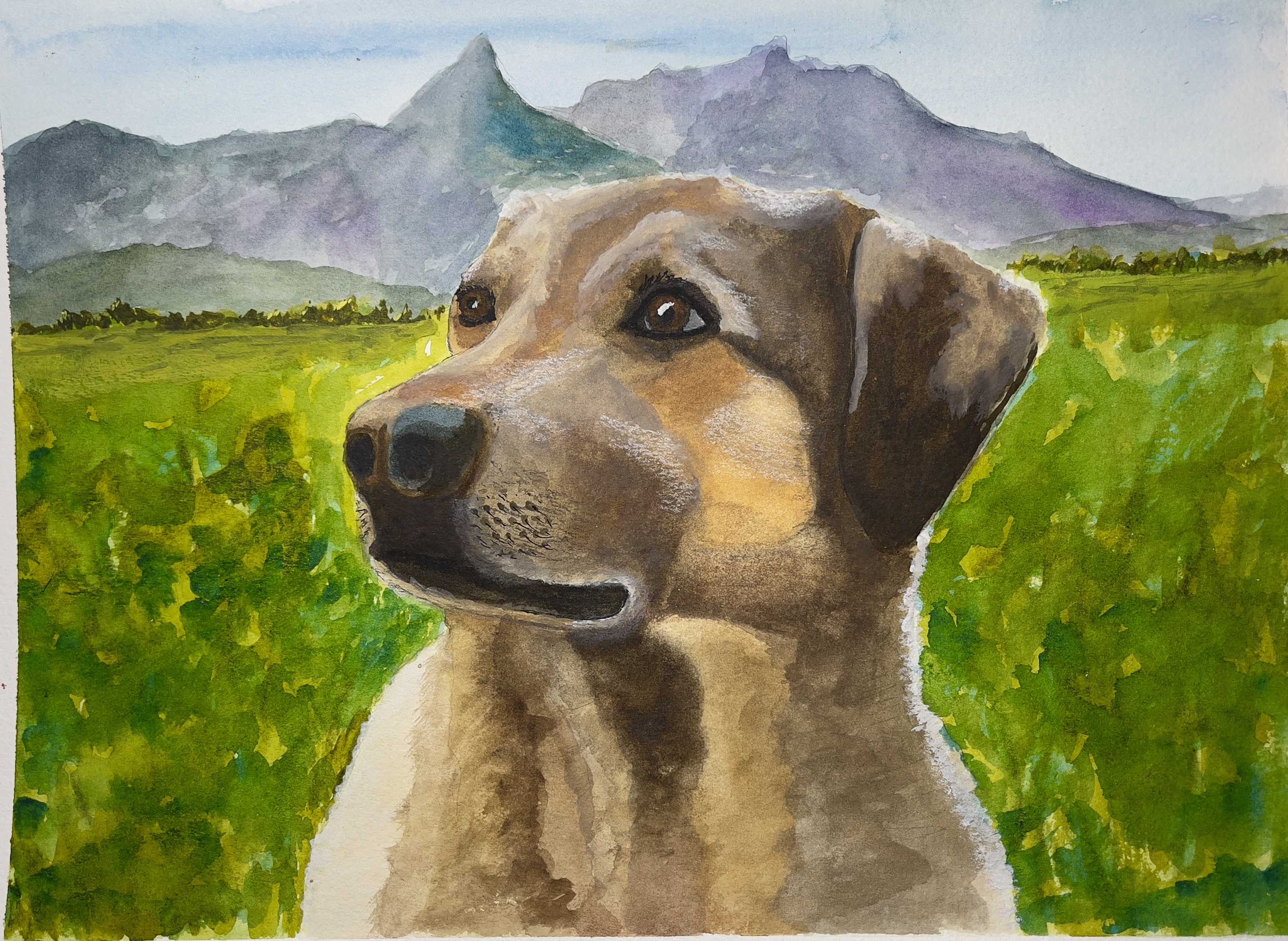The painting I’m showing you today is one that I did yesterday for my brother-in-law, Carlos. My sister asked me if I could do a portrait of his late dog Cosmo (originally a Romanian stray, I think). At first I was excited to do so, but then I remembered how that I’ve done very little painting of animals, and they weren’t that good.