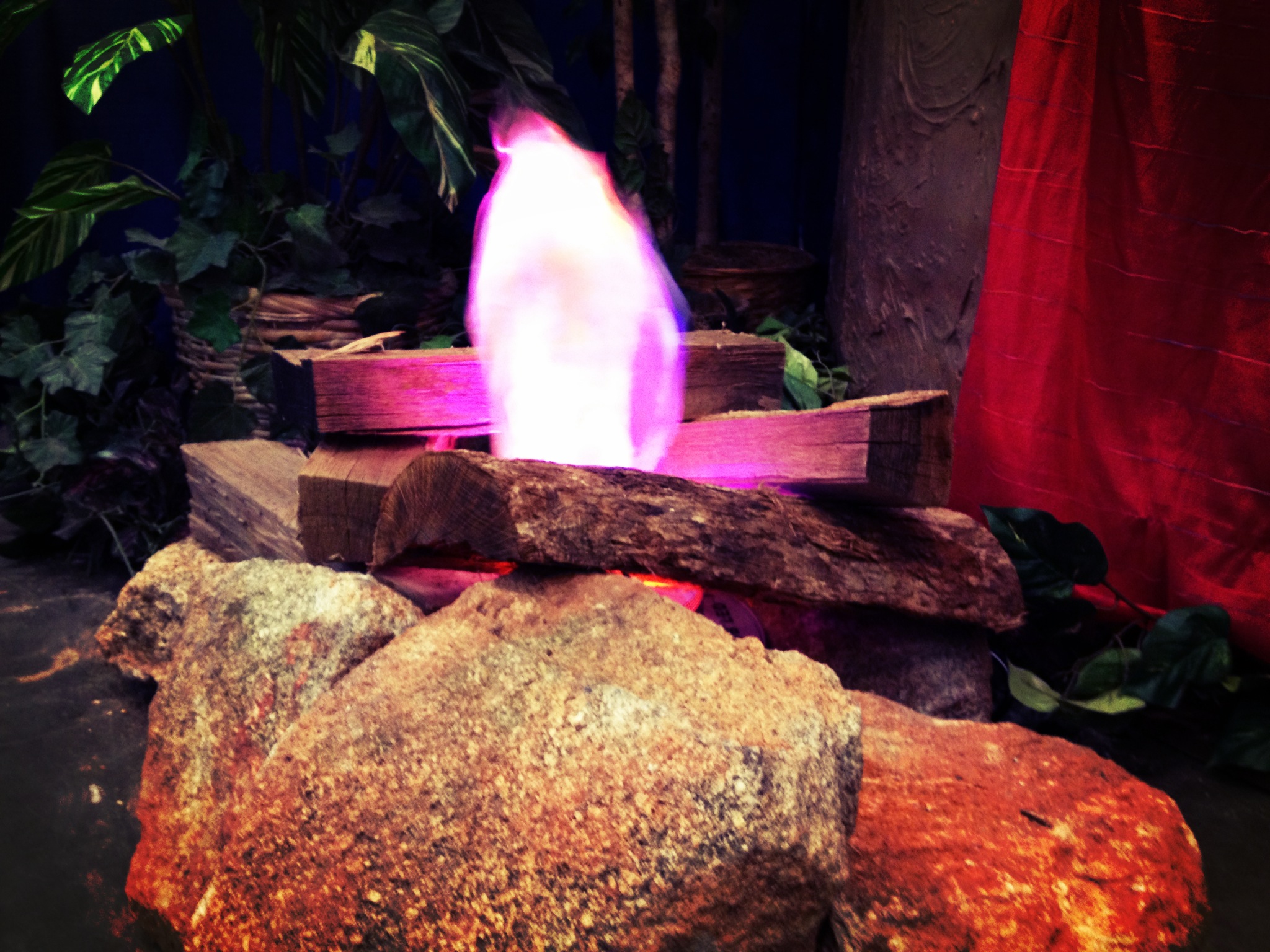 While strolling through the exhibit hall where various ministries had booths and displays, I came across this neat fake camp fire. The flame in the middle was made of a fabric that fluttered above a silent fan and colored light. From only a few feet away it looked real.