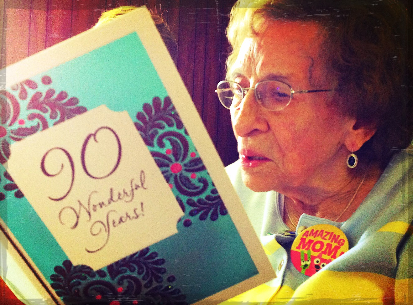 “Grandmommy” is my wife’s grandmother on her mother’s side. Her actual name is Helen, and we celebrated her 90th birthday with a big party at our place (in the fellowship hall of our church – I’m the only guy on the block with a gym in his back yard).