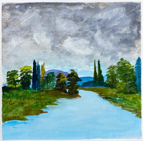 A reproduction of the 1953 baptistery painting that used to hang in Bethlehem Baptist Church, Warthen, GA. (original on 8 x 8 paper)