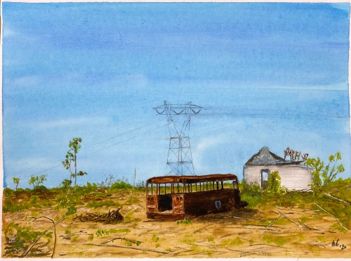 After the pine trees had been farmed in middle Georgia, not the Apocalypse. (9″x12″ canvas)